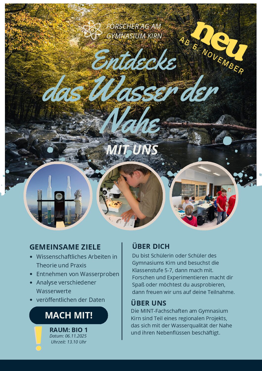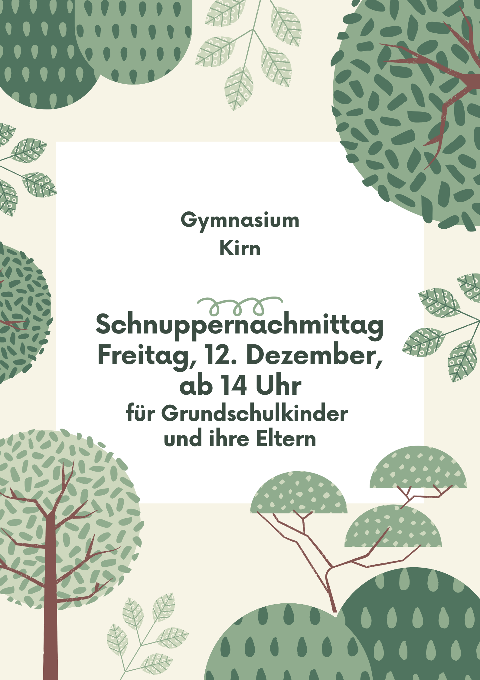 Am Mittwoch, 8.10.2025, 19 Uhr, findet ein Informationsabend für die Eltern von Kindern der 4. Grundschulklassen statt. Das Gymnasium Kirn informiert über die Schulform, die Anforderungen und die speziellen Angebote unserer Schule. So wollen wir die anstehende Entscheidung über die weitere Schullaufbahn unterstützen. Einladungen wurden über die Grundschulen verteilt.